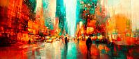 Een levendig samenspel van heldere kleuren en dynamische vormen vangt het pulserende leven van een grote stad. De vage silhouetten van mensen en voertuigen geven het kunstwerk een mysterieuze diepte. Perfect voor een moderne woonkamer, het brengt energie en inspiratie in elke kamer en brengt stedelijke dromen tot leven.