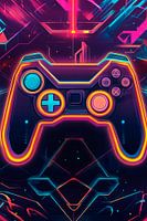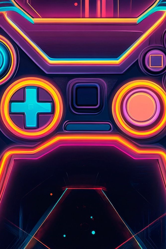 Futuristische neonkleuren pulseren in het donker, terwijl een gestileerde gamecontroller in het midden schittert. De gloeiende knoppen en gebogen lijnen nodigen je uit om je onder te dompelen in digitale werelden. Omgeven door geometrische patronen lijken ruimte en tijd te zijn opgeschort - een avontuur vol mogelijkheden wacht op je om actief te worden en de controle te nemen.