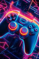 De gamecontroller schittert te midden van pulserende neonstralen, een poort naar fantastische werelden. De felle blauwe en oranje kleuren geven hem een futuristisch aura, terwijl de gebogen lijnen en knoppen avonturen en uitdagingen beloven. Plezier en creatieve ontwikkeling zijn hier onlosmakelijk met elkaar verbonden.