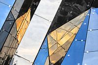 Het Franse multimedia pretpark Futuroscope nabij Poitiers heeft een glazen hoofdgebouw dat eruit ziet als een diamant. De omgeving wordt hierin met al zijn kleuren weerspiegeld. Met de juiste kadrering krijg je hier de meest fantastische abstracte vormen en kleuren op de foto.