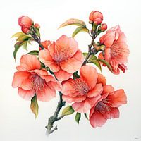 Prachtige, stijlvolle aquarel van bloemen in bloei in fuzzy peach waterverf tinten.