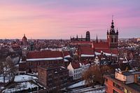 Gdansk (Danzig), Pommeren, Polen - ijzige zonsopgang over de skyline van de stad