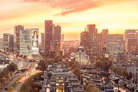 Skyline van Rotterdam gemaakt tijdens de ondergaande zon. betreft het gebied van het witte huis en de oude haven aan de noordzijde van Rotterdam.