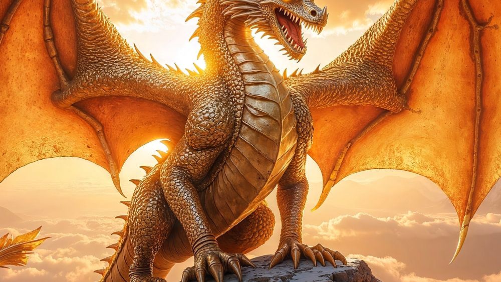 Dit kunstwerk toont geen gewone draak, maar de belichaming van macht, eeuwigheid en goddelijke heerschappij. GOLDRAKON vertegenwoordigt de mythische band tussen hemel en aarde – een wachter die zijn vlammen loslaat op iedereen die het waagt zijn rijk binnen te dringen. De gouden draak is een symbool van kracht, onsterfelijkheid en de oeroude kracht die ver voorbij de bergen straalt.
