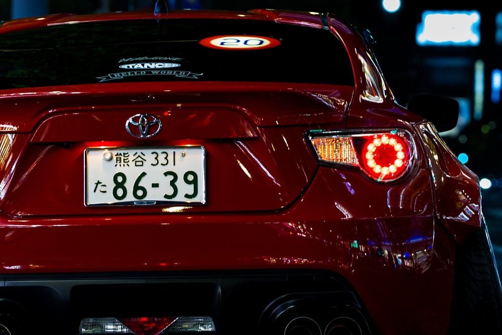 Een uitgebouwde en opgevoerde Japanse Toyota GR86 die werd vastgelegd in Akihabara in Tokyo Japan.