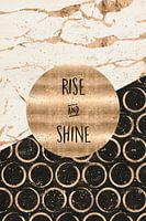 Moderne grafische kunst in een elegante Gouden Outfit en typografische elementen. Een Ontwerp dat past bij het motto van het leven. RISE AND SHINE. Uit de veren en er iets van de nieuwe dag!
