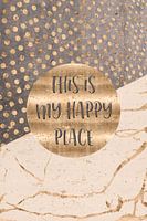 Moderne grafische kunst in een elegante gouden outfit en typografische elementen. Een ontwerp dat past bij het motto van het leven. Dit is mijn gelukkige plek. Het leven is prachtig. Maak het u gemakkelijk waar u het prettig vindt, vooral thuis!