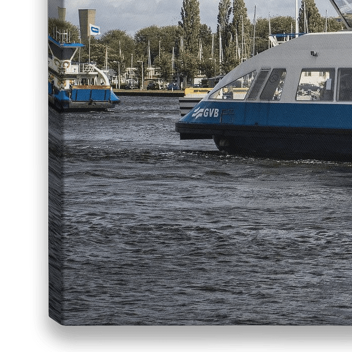 Koop de foto GVB OV boot Amsterdam van denk web als print op canvas, aluminium dibond, (ingelijste) fotoprint, behang en ArtFrame. Voor jou op maat geprint in Fine-Art kwaliteit.