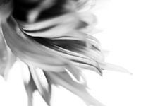 Close-up van de smalle blaadjes van een bloem in klassiek zwart-wit. Zachte sfeer.