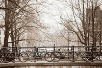 Fietsen op een brug in Amsterdam