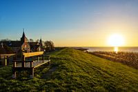 Het Friese dorpje aan de IJsselmeerdijk Gaast met de ondergaande zon