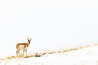 Fraaie positie van een gaffelbok in de sneeuw in Yellowstone.