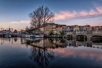 Galgenwater in Leiden met zicht op de Turfmarkt, net voor zonsondergang.