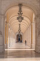 Koop de foto Gallerij langs het plein Praca do Commercio in Lissabon, Portugal - natuur en reisfotografie van Christa Stroo fotografie op canvas, aluminium dibond, (ingelijste) fotoprint, behang en ArtFrame, op maat geprint in Fine-Art kwaliteit.
