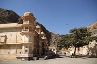 De Galta tempel heeft een mooie architectuur. De tempel ligt verscholen in de bergen bij Jaipur, Rajasthan, India. De tempel heeft een paar waterbassins met natuurlijk water uit de bergen. Ook zijn er veel aapjes die heilig zijn.