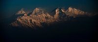 De Ganesh Himal in Nepal, gezien van af de Gosaikunda trekking. Deze trekking kan gecombineerd worden met de Langtang trekking. Deze foto is vroeg in de morgen tijdens zonsopkomst gemaakt. Op de foto zijn pieken te zien van boven de 7000 meter.