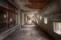 Dit is een gang in een verlaten ziekenhuis in Italië waar een aantal matrassen op de grond liggen. Het ziekenhuis bestaat uit verschillende delen en deze gang is in het grootste deel. De dag dat ik deze locatie fotografeerde was het erg regenachtig wat zorgde voor een spookachtige sfeer.