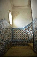 Gang met kleurrijke azulejos in de universiteitsgebouwen van Coimbra, Portugal.