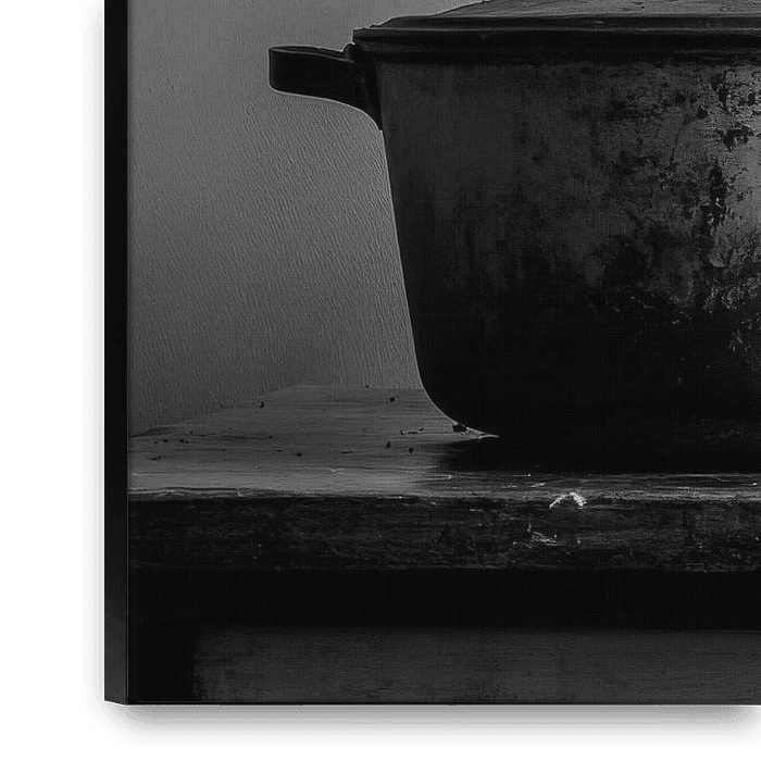 In een fascinerend spel van licht en schaduw wordt de rustieke elegantie van een oude kookpot gecombineerd met de gratie van een gans. Deze visuele compositie brengt de charme van een landelijke keuken tot leven en voegt een vleugje nostalgie toe aan elke kamer. Ideaal voor de keuken, waar het gezelligheid en creativiteit bevordert.