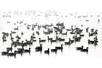 Ganzen in de mist in natuurgebied de Hors op Texel.