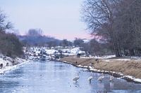 Ganzen in de Amsterdamse Waterleidingduinen. In de sneeuw, winter 2021. Prachtig wit gekleurd duingebied.