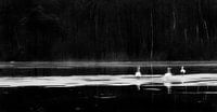 ganzen op een bevroren meer in Zuid- Zweden. Met opzet een lange sluitertijd gebruikt om beweging te krijgen.