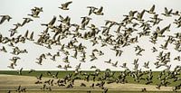 Een vlucht ganzen op het "Noorderleech", het buitendijkse gebied in het noorden van Friesland