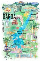 Gardameer Italië Geïllustreerde kaart met wegen en toeristische hoogtepunten