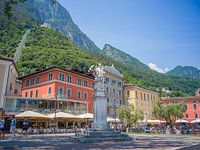 Het levendige, mondaine vakantieoord Riva del Garda wordt omringd door machtige bergen op het smalle noordelijke puntje van het Gardameer. Deze foto toont Piazza Catena, een prachtig plein direct aan de haven. Het is vernoemd naar een historische ketting die ooit diende om de haven te…