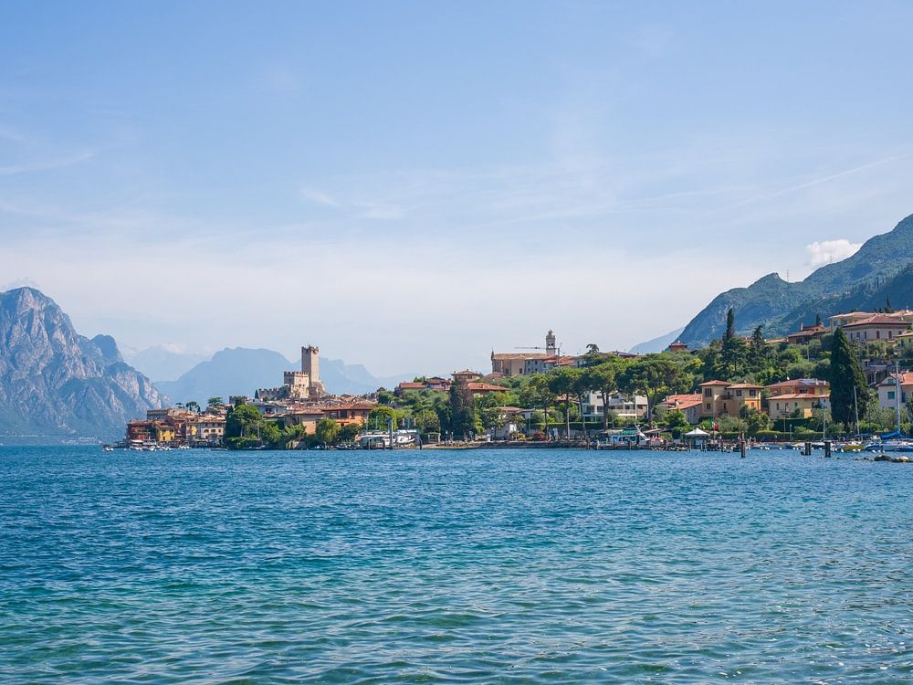 Het panorama van Malcesine met het kasteel van Scaliger in het centrum.