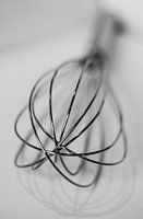 In de keuken vindt je van allerlei kunstzinnig gereedschap. De garde is onmisbaar in de keuken. Mooie schaduw erbij maakt het plaatje compleet.