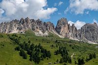UNESCO werelderfgoed de Dolomieten in Zuid-Tirol. Een prachtig ruig landschap met massieve rotsformaties en groene weides bij de Gardena Pas in het Noorden van Italië.