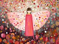 Gardiaanse engel in een veld vol bloemen,abstract schilderij