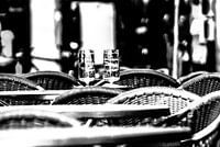 Tafels, stoelen, lege bierglazen