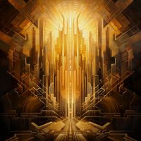 "Gate to Metropolis" is geïnspireerd door de vormen en het kleurenpallet van de Art Deco kunststroming van de jaren 20s. Het werk geeft een elegante en klassieke uitstraling aan uw interieur!