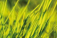Deze foto toont een fris, groen gazon in de ochtendzon. De foto is een foto. De foto is genomen vanaf de grond. De speciale opnametechniek van meervoudige belichtingen in de camera geeft deze foto zijn dromerige uiterlijk.