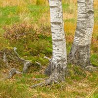Witte berkenstammen tegen herfstkleuren: als geschilderd