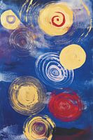 Zachte wervelingen van warme geeltinten dansen op een diepblauwe achtergrond, terwijl helderrode accenten de compositie tot leven brengen. Dit dynamische kleurenschema creëert een uitnodigende sfeer en is perfect voor een creatieve woonkamer, waar het inspiratie en energie bevordert. Een blikvanger die de verbeelding prikkelt!