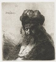 Gebaarde oude man met hoge bontmuts en gesloten ogen, Rembrandt van Rijn, 1633 - 1637