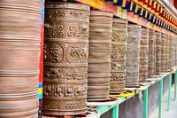 Deze van koper gemaakte gebedsmolens bevatten een mantra. De meest voorkomende mantra is Om mani padme hum. Het draaien van de gebedsmolen heeft hetzelfde effect als het uitspreken van de mantra. Pelgrims lopen rondes rond tempels ondertussen aan de gebedsmolens draaiend.