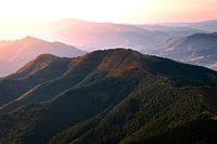 Een mooie foto van een gebergte in de ochtend of avond. Mooi contrast tussen de zonnige kant en schaduwkant van de bergen.