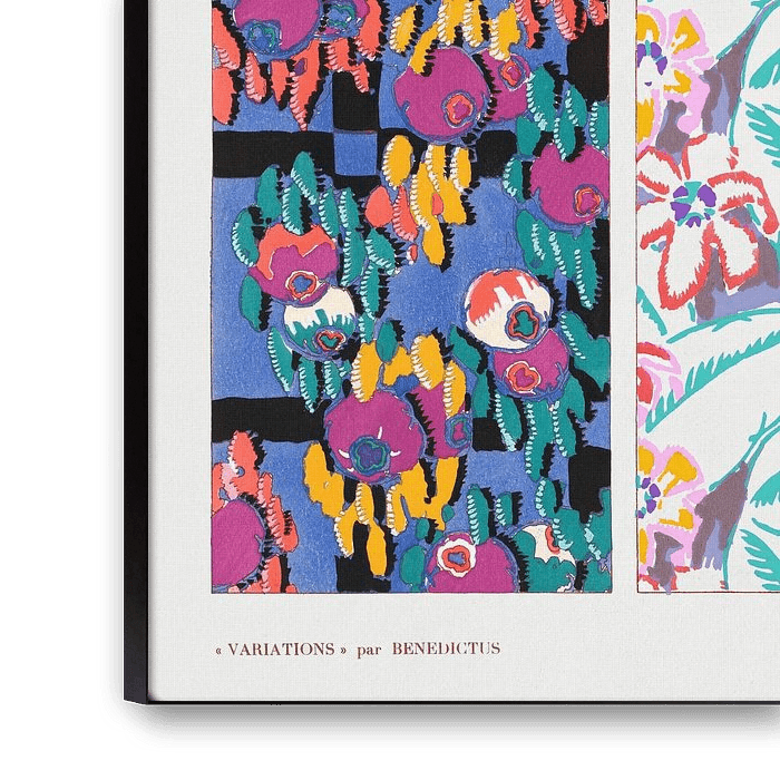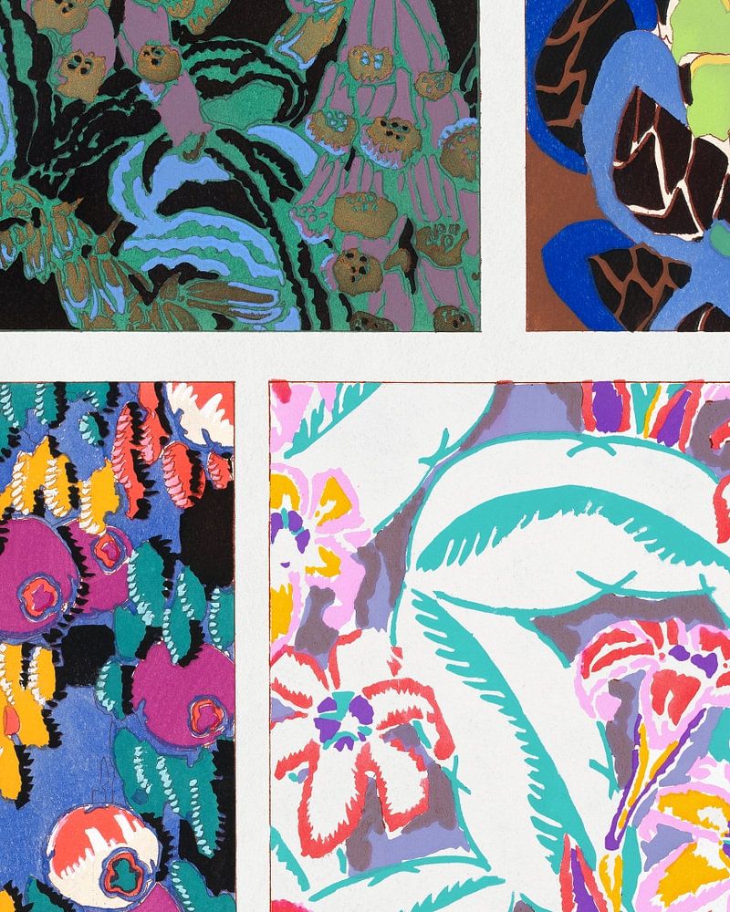 Gebloemd art deco patroon, variaties 18 uit onze eigen Variations Quatre-Vingt-Six Motifs Décoratifs En Vingt Planches (1928) van Édouard Bénédictus.