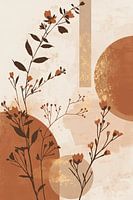 Een elegant bloemmotief met fijne takken en delicate bloemen, ingebed in abstracte terracotta en beige tinten. Het samenspel van natuurlijke vormen en moderne textuur creëert een warm, stijlvol kunstwerk voor hedendaagse ruimtes.