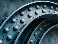 Het beeld verenigt techniek en kunst tot een moderne, dynamische fotografieprint, geschikt voor wie zoekt naar industriële metalen muurdecoratie, architectonisch design of hedendaagse abstracte kunst.
