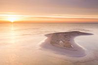 Een kleine zandbank vecht tegen het opkomende water.