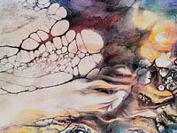"Birth of Life in Pastel Colours II" is een digitaal abstract schilderij dat op een liefdevolle en gevoelige manier de geboorte van de zee verbeeldt. De geboorte van de natuur, de geboorte van oceaanstromingen en leven. Het schilderij is overwegend in zacht blauw, goud, ivoor, beige, turquoise en aardkleuren.