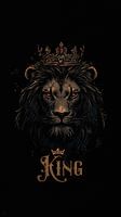 Een donker, intens portret van een leeuw met een rustieke kroon, die absolute macht en dominantie symboliseert. Zijn gloeiende rode ogen staren uit het zwart en bevestigen zijn status als de onbetwiste vorst van het wild. KONING.