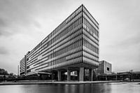 Zwart wit foto van het Atlas gebouw op de Technische Universiteit in Eindhoven.