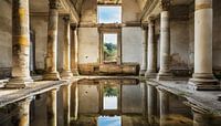 Gebouw met zuilen in het Romeinse Rijk en reflectie