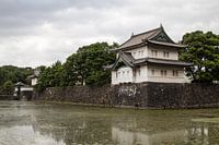 Gebouwen bij het Keizerlijk Paleis in Tokio, Japan, gezien vanuit de buitentuinen bij het paleis.